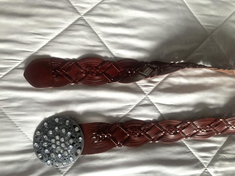 Плетений пояс із гарною пряжкою, ширина 5,5 см, діаметр пряжки 9 см, повна довжина 108 см, зручно застібається на будь-який необхідний об'єм, стан нового