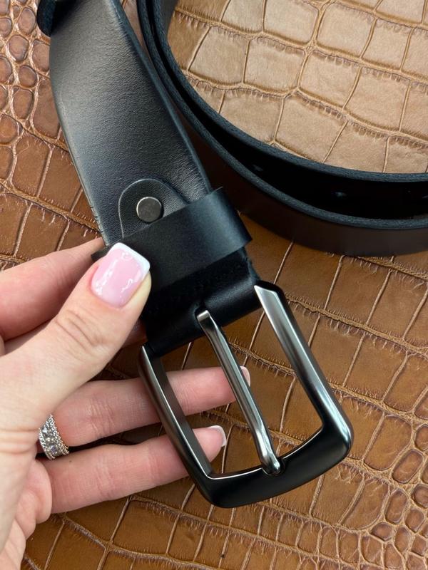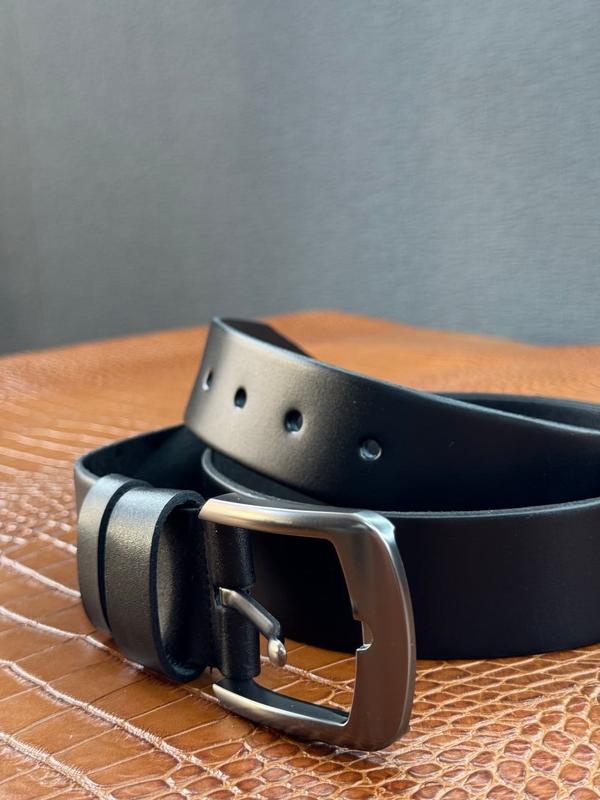 Якісні матеріали, стильна металева пряжка та акуратний зовнішній вигляд. Ремінь виконаний із натуральної телячої шкіри та металевої фурнітури.