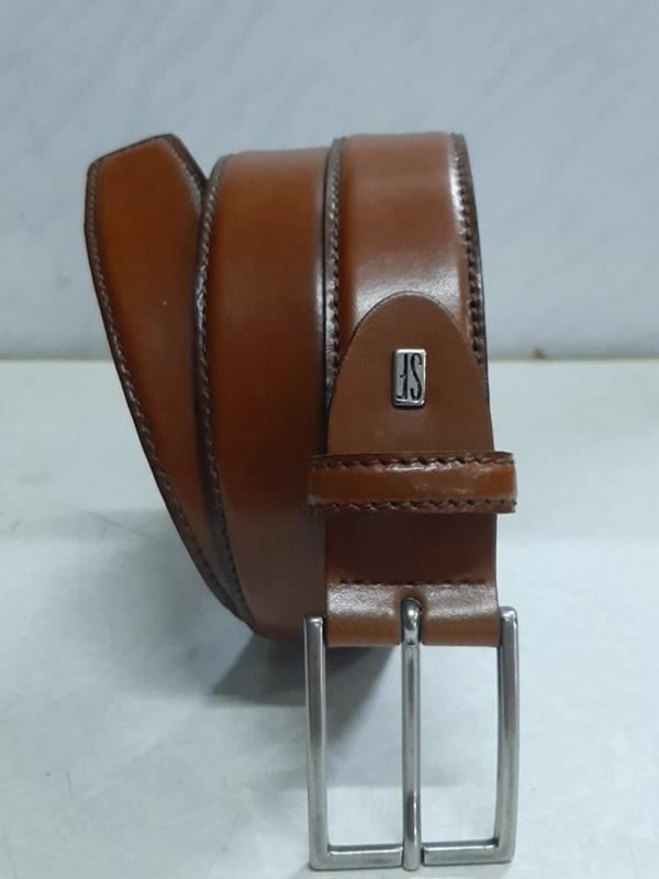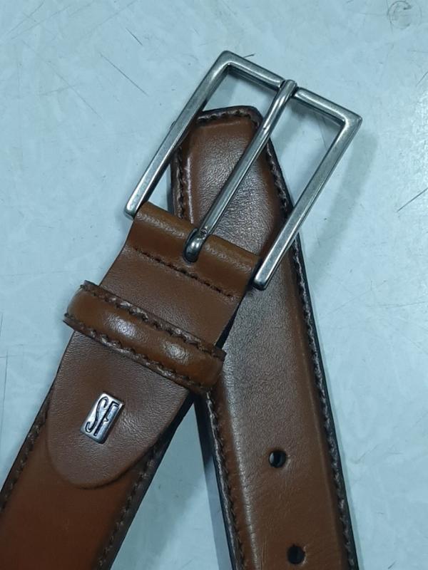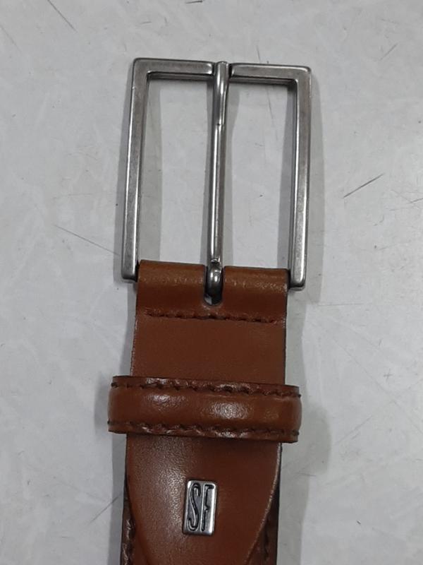 Ремінь шкіряний брючний, світло-коричневого кольору, прошитий з двох сторін, довжина полотна 107см,довжина від шпильки до першого 87см,останнього 97см, ширина 3,4 см, металева пряжка (5,5×4,5 см), стан дивись фото...