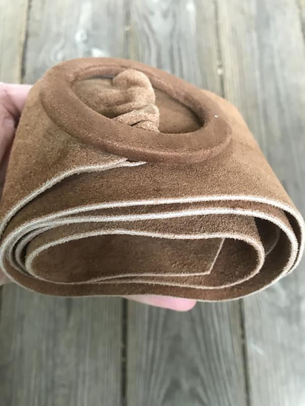 Шикарний ремінь універсального розміру з м'якої замші рудого кольору. Італія. Прекрасний стан. Красива кругла пряжка також обтягнута замшею. Загальна довжина ременя до пряжки-110 див.