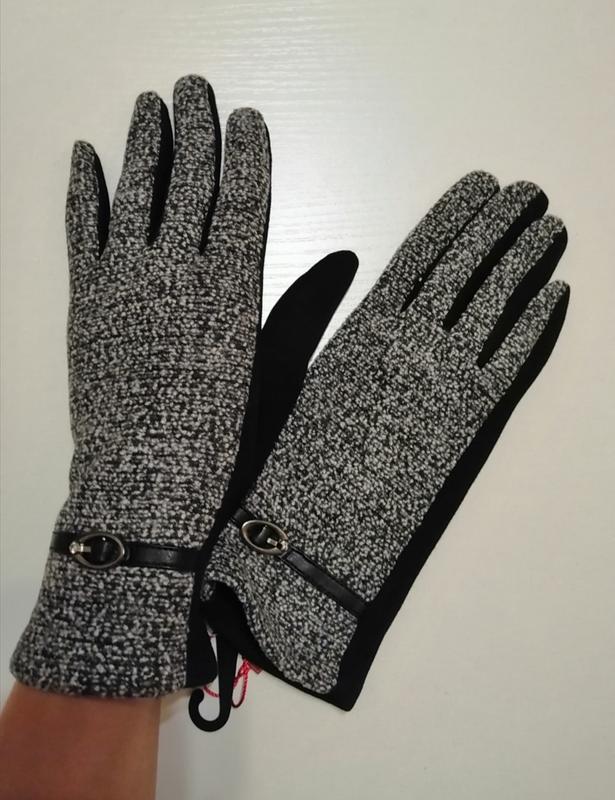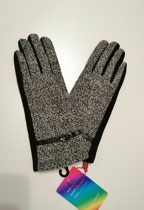 Гарні рукавички з тканини, трикотаж. Всередині коротенький м'який штучний хутро і фліс. Вказівні пальчики сенсорні. Ремінець На зап'ясті з екошкіри і пряжка з камінчиком. Рукавички відмінно сідають на ручку. Розмір універсал 6,5-8,5 Відправка новою поштою за пред.оплату або повної оплати на картку. За безпечною оплаті не відправляю!