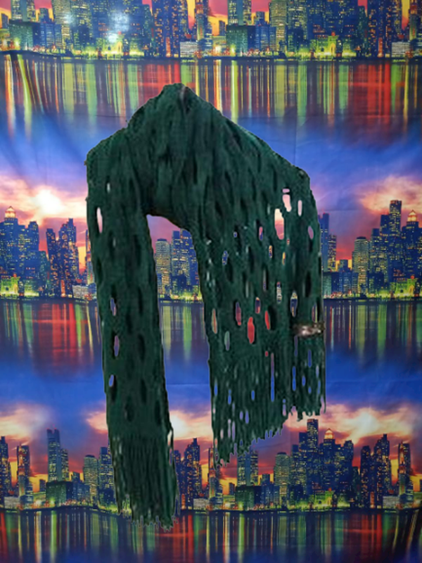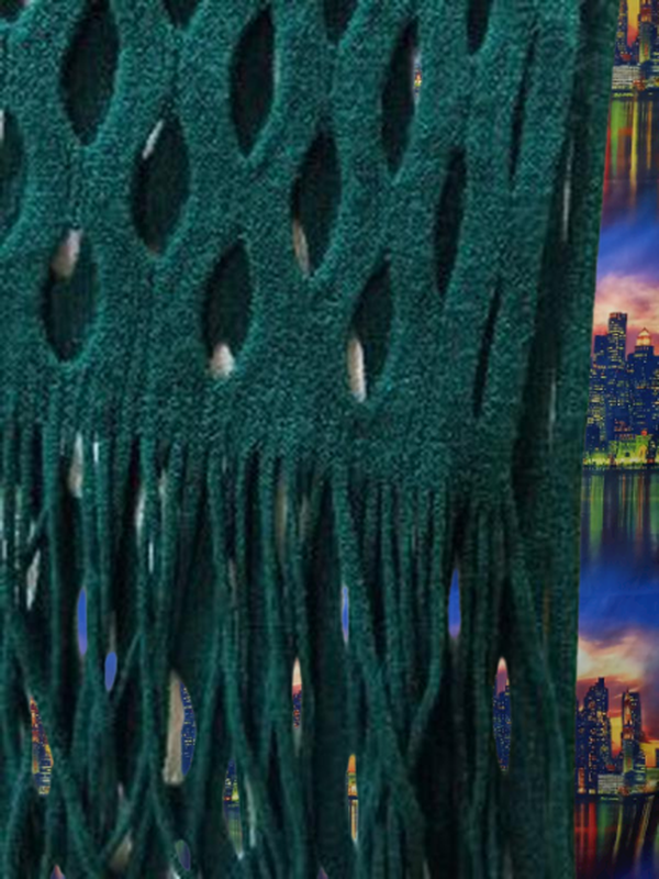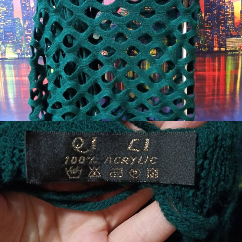 Ажурний в'язаний палантин. Нитка 100% акрил. Дуже м'який і повітряний. Заміри: довжина виробу без бахроми 175 см, довжина бахроми 18 см, ширина виробу 60 см