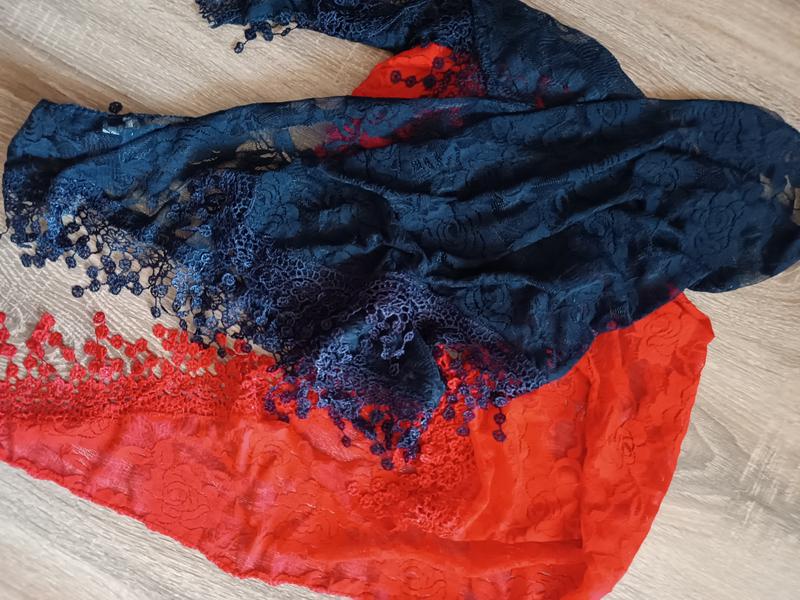 шарф-хустинка 70%поліестер 30%віскоза країна виробник P.R.C кольори: червоний, темно-синій