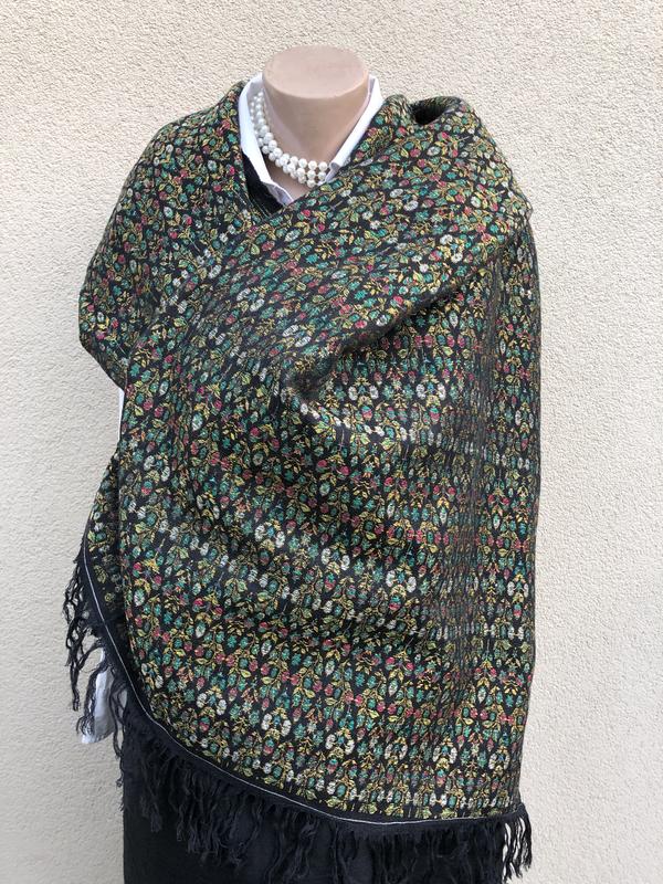 Помисел видимості палантин з натуральної тканини з шовковою ниткою , але так як відсутні бирки стверджувати не можу) 77 см х 177 см-+( без бахроми