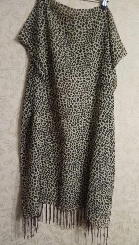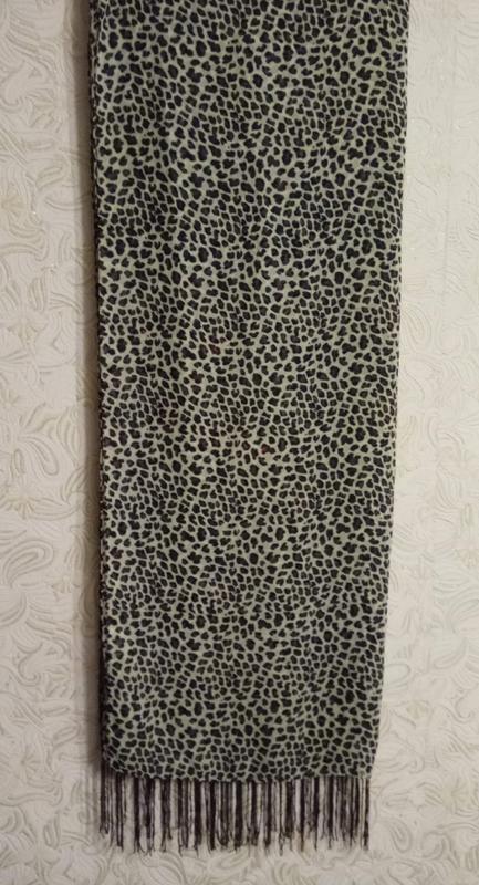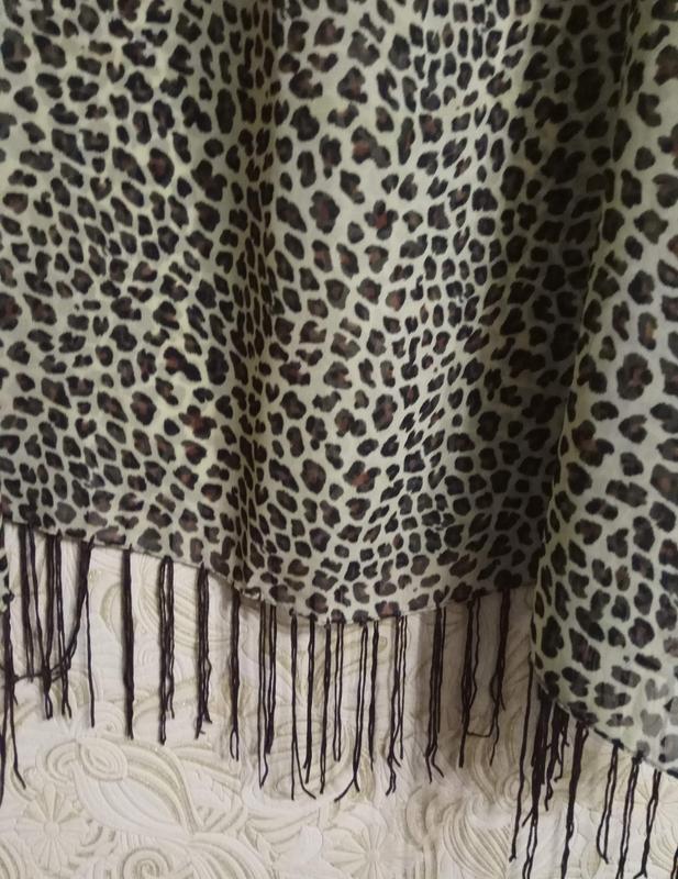 Шарф з китицями в актуальний леопардовий принт, дуже легкий, приємний на дотик.Доповнить Ваш образ і додасть шарму.Реальний колір на фото 4.В подарунок йде маленька хустка (фото 5,6),яку можна зав'язати на шию або на голову.