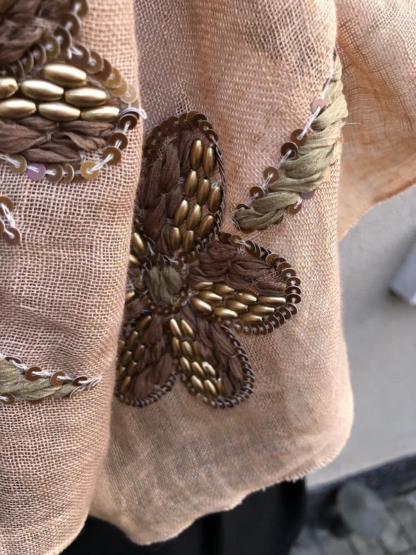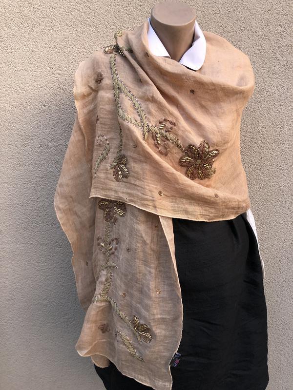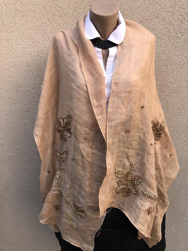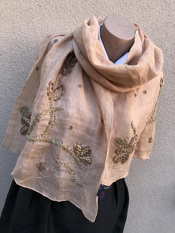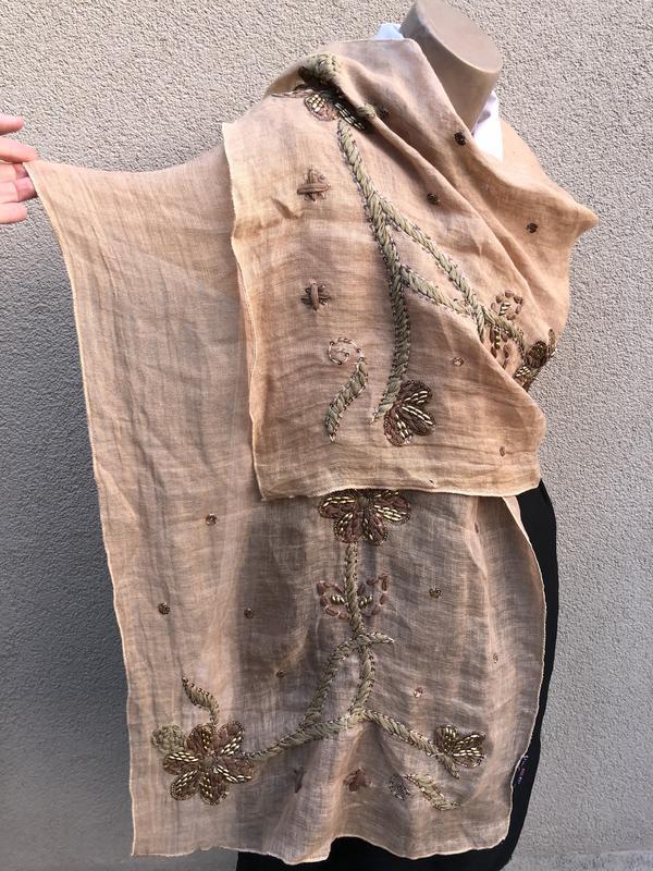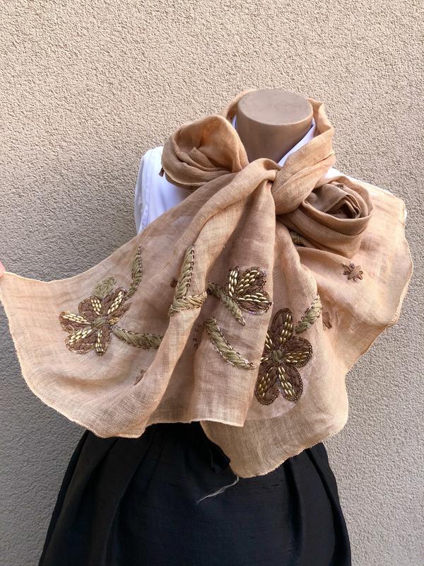 Лен100%, шарф,вишивка бісером,пайєтками,палантин,індія,етно стиль бохо,
