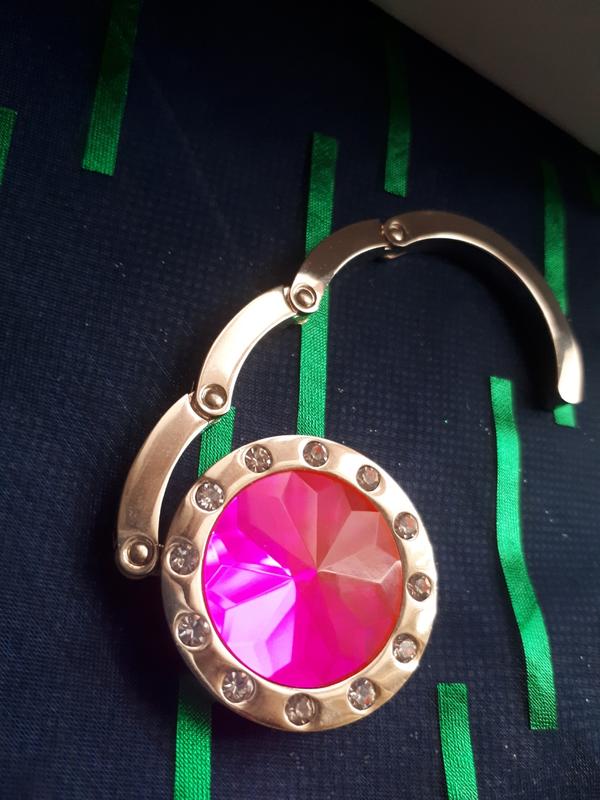 Маленький але дуже елегантний.Чудова якість,перевірена роками.Надійно кріпиться на столі,складається змійкою,вміщаючись в кишені.Антиковзка поверхня. Спосіб застосування: дкоративну частина гачка тримача для сумок кладемо на стільницю, а на розкладний металевий гачок вішаємо сумку. Не ковзає,не зсувається, не дряпає поверхню столу - під декоративною частиною знаходиться спеціальний захисний прошарок.