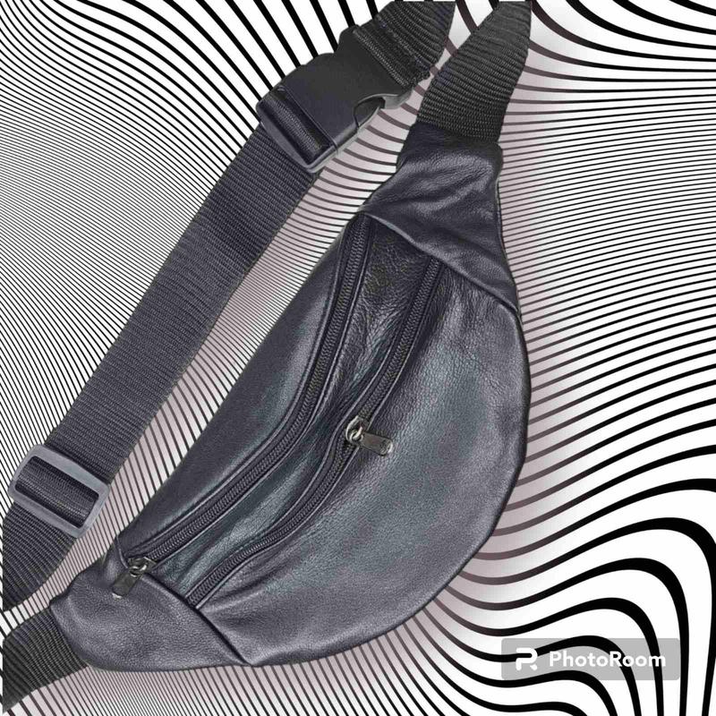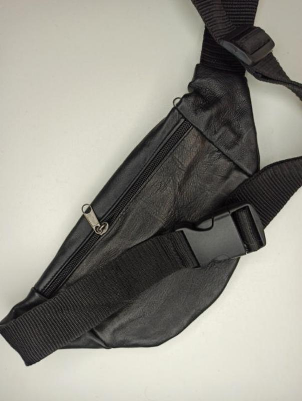 Сумка із натуральної шкіри чорного кольору, має три відділення, ремінь сумки регулюється.Розмір:30×14×5,5смВ поясі максимально 115-125см