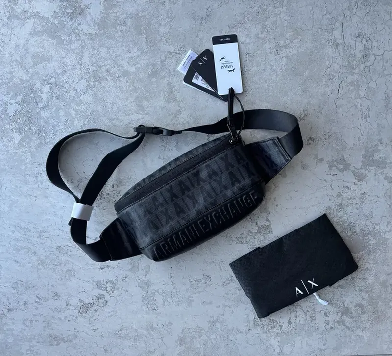 Сумка бананка armani exchange чоловіча унісекс жіноча сіра чорна фірмо