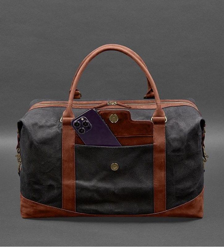 Ручки, дно, обшивка кишень і змійок сумки виготовлені з натуральної шкіри
