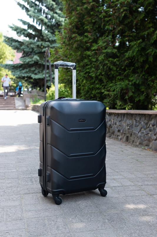Валіза пластикова, виготовлена з ударостійкого та морозостійкого матеріалу — полікарбонат + абс-пластик. Має 4 коліщатка, що обертаються на 360 градусів. Ідеально підходить як основний багаж в літак, має розміри — 74х50 х27 см з урахуванням коліс. Є верхня ручка для перенесення й телескопічна алюмінієва ручка, яка фіксується в 3 положення. Усередині 2 повноцінних відділення, є фіксувальні ремені. Підкладка щільна, водовідштовхувальна. Фурнітура - чорна.