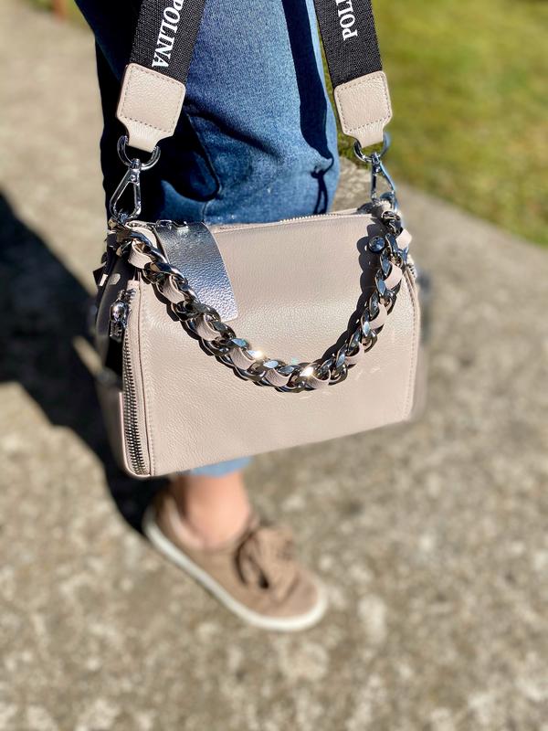 Колір: БЕЖ🍮 ⠀ Стильна жіноча шкіряна сумочка! Хітова модель! Матеріал: НАТУРАЛЬНА ШКІРА. ⠀ Розміри: Ширина-24 см. Висота-19 см. Глибина-13 см. ⠀ Доступні кольори: чорний, чорний лак, чорний замш+шкіра, беж, блакитний лак🌈 ( по наявності і цінах уточнюйте, будь ласка!!!). ⠀ У комплекті два ремінці: - текстильний широкий (довжина 98 см) і тонкий довгий (максимальна довжина 130-132 см, регулюється). Всередині одне загальне відділення розділене кишенею на блискавці + кишеньки по боках. З тильного боку кишеня, що закривається змійкою. НАЯВНІСТЬ І ФОРМУ ОПЛАТИ ОБОВ'ЯЗКОВО УТОЧНЮЙТЕ ПЕРЕД ЗАМОВЛЕННЯМ У ОСОБИСТИХ ПОВІДОМЛЕННЯХ📩