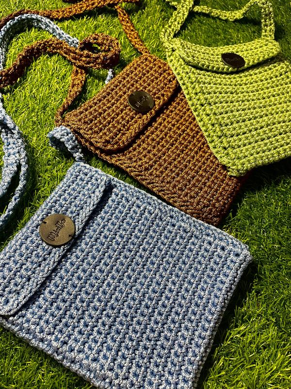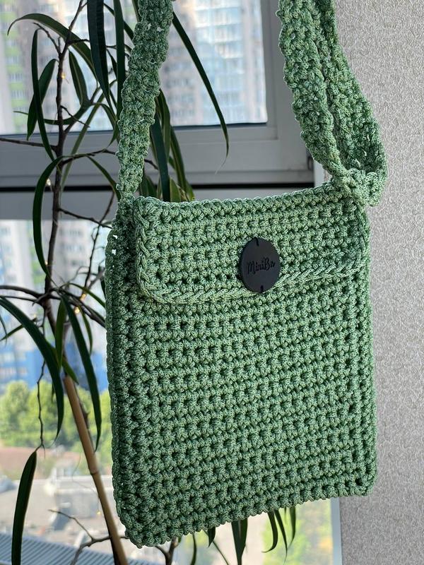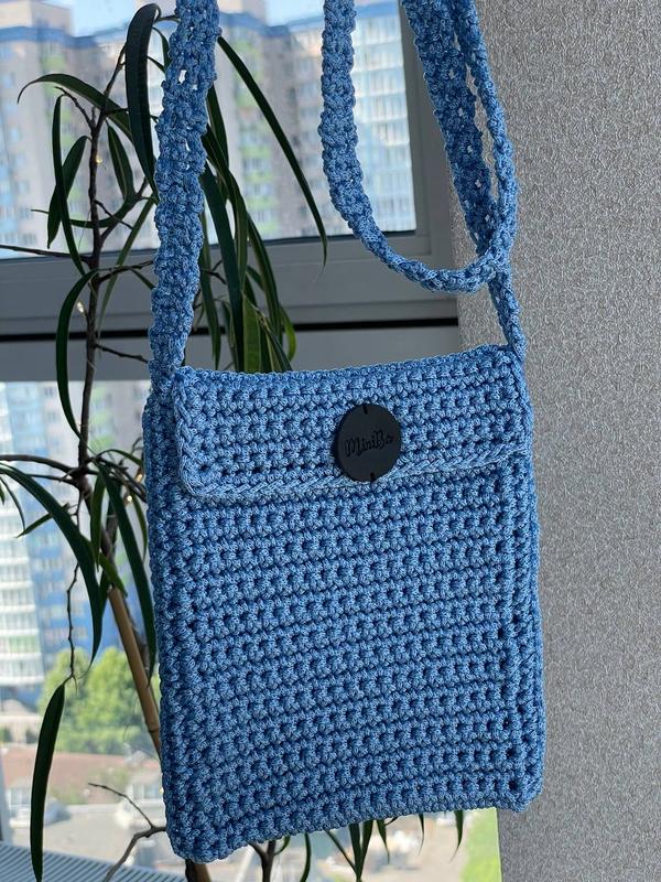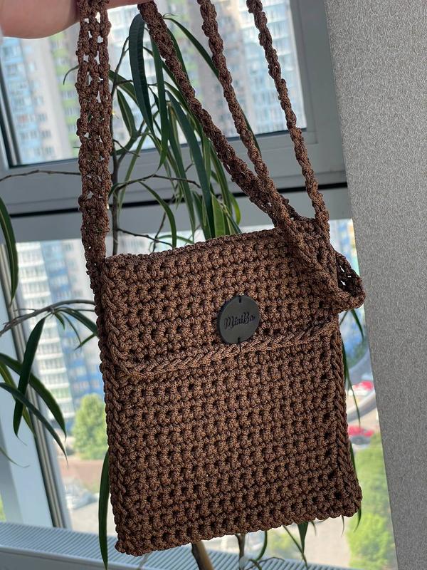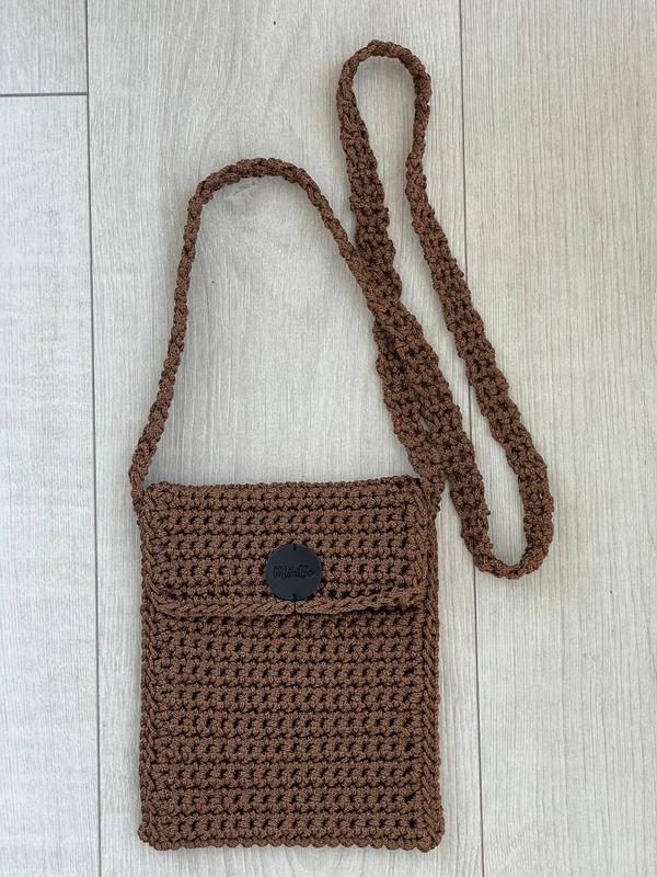 Гарнюня сумка для телефону, паспорту чи інших дрібничок на повсякдень!Розмір : 15Х18см.Матеріал: поліпропіленовий шнур , магнітна застібка.Колір : бронза, блакитний, зелений.