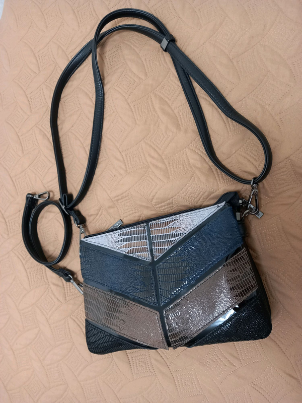 Тип сумки: Через плече Сумочка з дуже якісної екошкіри, фірма Gilda Tohetti. Блискучі вставки - шкіра. Має 1 головний замок на 3 повноцінні відділення. Розміри: 25х17×7 В комплекті короткий ремінець та довгий з регулюванням. Нова, з етикеткою.