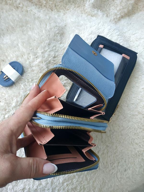 Невелика сумка клатч, завжди зручний та затребуваний аксесуар. З такою сумочкою у вас не буде проблем куди покласти телефон, ключі, картки і при цьому не втомитися під час прогулянки від важкої сумки в руках. Особливість моделі – прозора стінка, через яку можна стежити за екраном телефону.