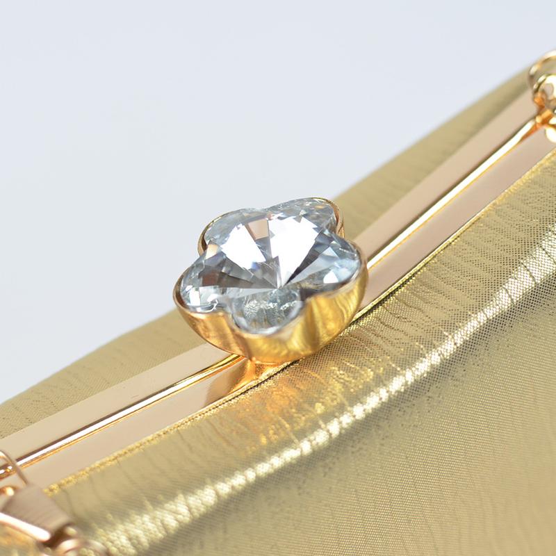 Мініатюрна, компактна сумочка (клатч-бокс). Одне відділення, яке закривається клямкою. Можна обійтися і без ланцюжка - завдяки своїм невеликим розмірам сумка-клатч гармонійно вміститься в руці. Ручка інкрустована камінням (якісне грановане скло).