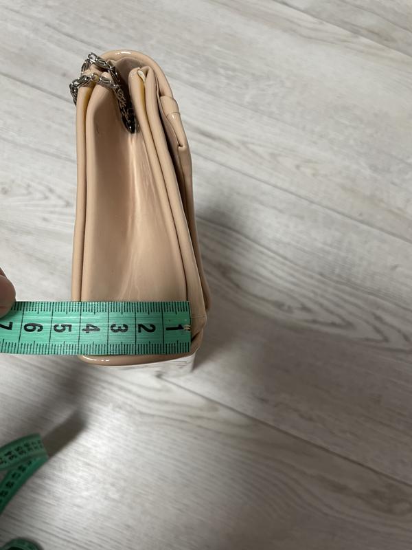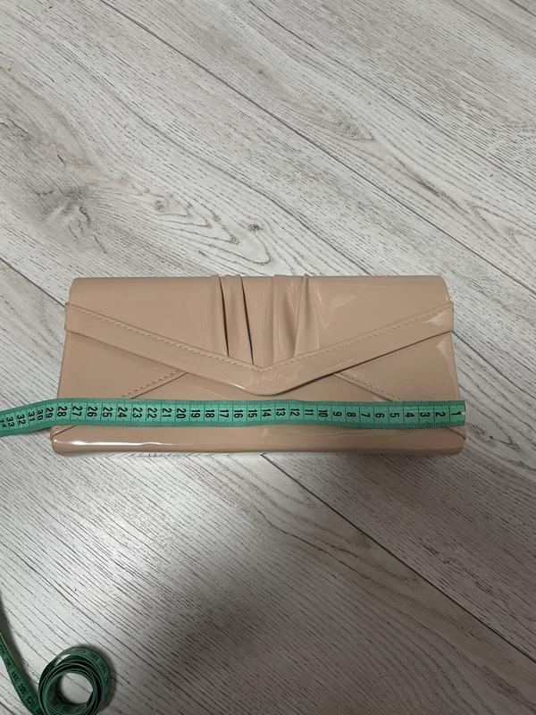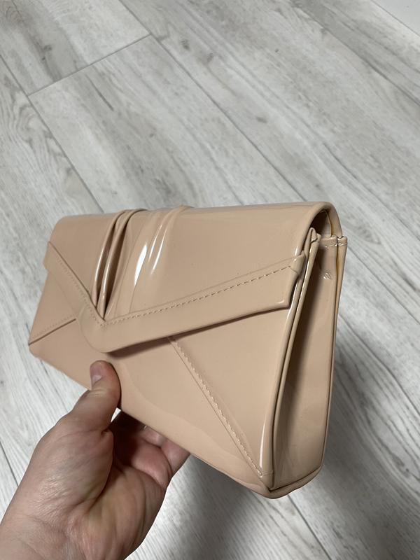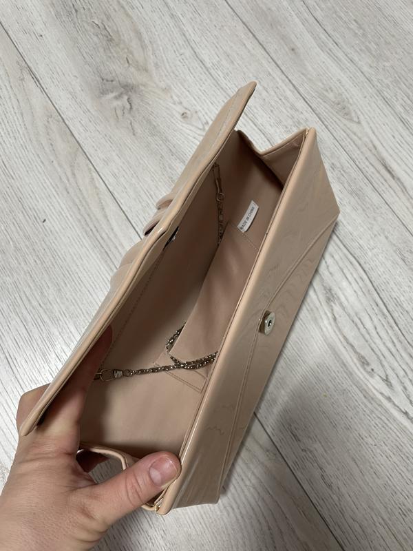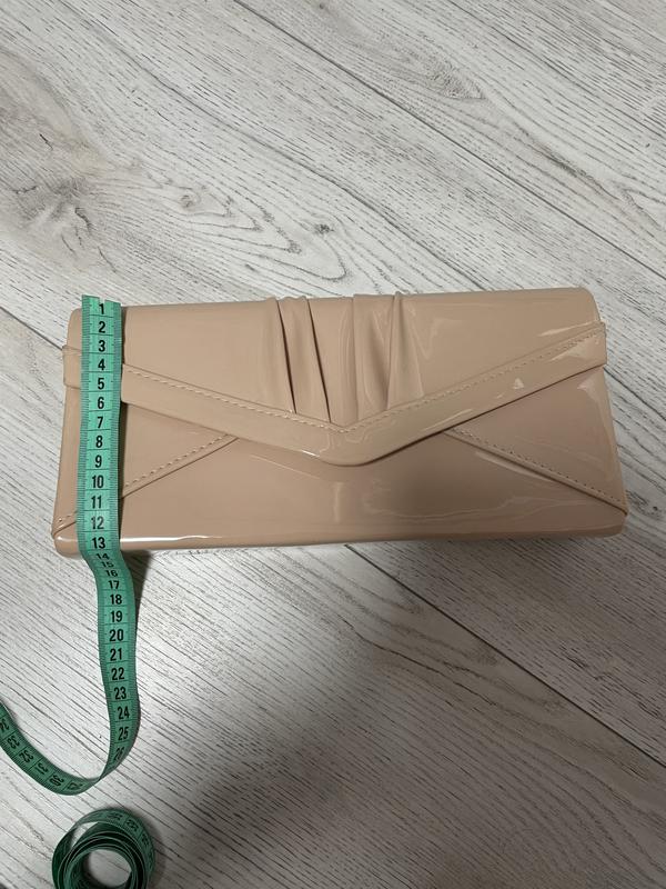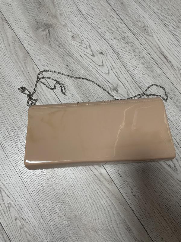 Лаковий клатч, мерехтливої кольору, на зворотній стороні є невеликі зміни в кольорі, є ланцюжок яку можна за бажанням прибрати всередину.
