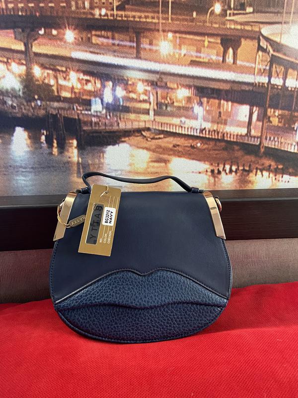 Сумка batty, з акцентними губами , темно-синього кольору , нова з бірками , золота фурнітура , якісна Туреччина , зручна в носінні, легка, матеріал - пресована шкіра, є додатковий ремінь (дивіться фото). Розміри виробу : висота 20 см , ширина 23 см, глибина: 7 см . Дивіться в профілі і інші мої сумочки .