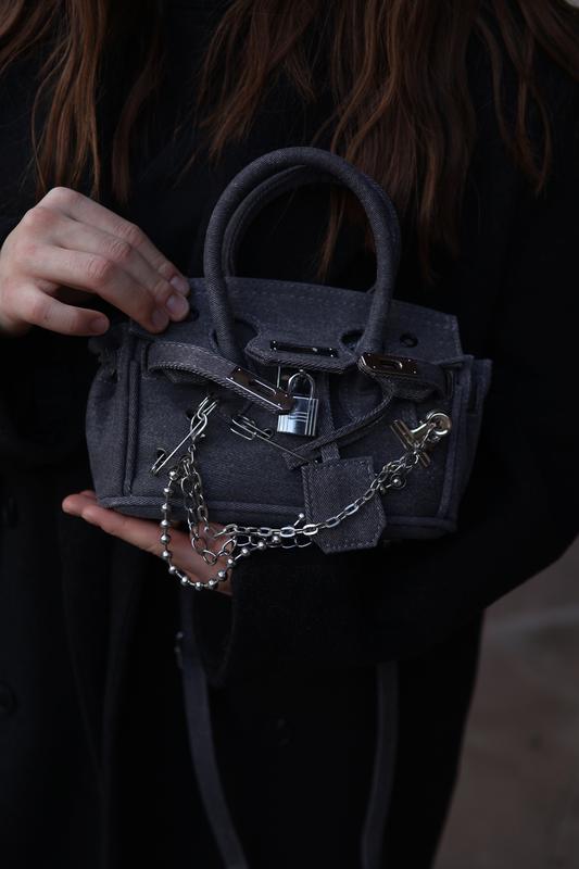 Сумка жіноча з деніму сіра трендова маленька сумочка з шпильками незвичайна