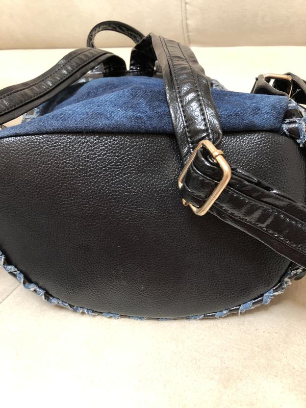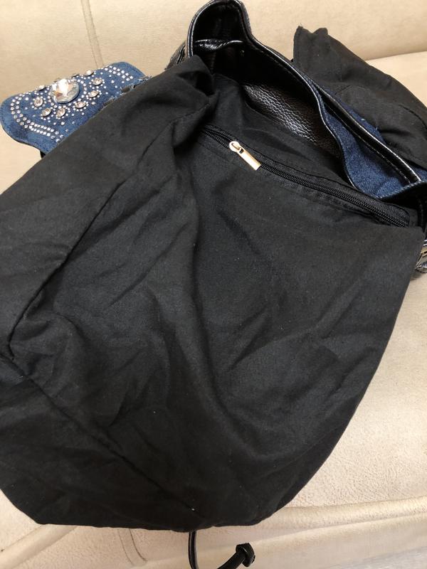 Рюкзак виконаний із джинсу із вставками кожзаму. Дуже багато стразів, стрази прикріплені міцно. Турція. Новий без бірки