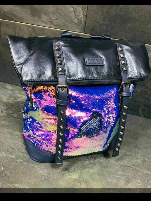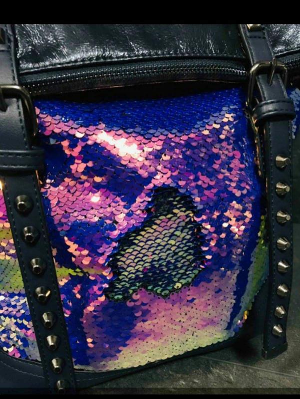 Рюкзак/сумкаЗАМЕРЫ:- ширина 31 см,- высота 44 см,- глубина 14 см!Пайетки перевёртыши!Внутри отделение и два кармана!