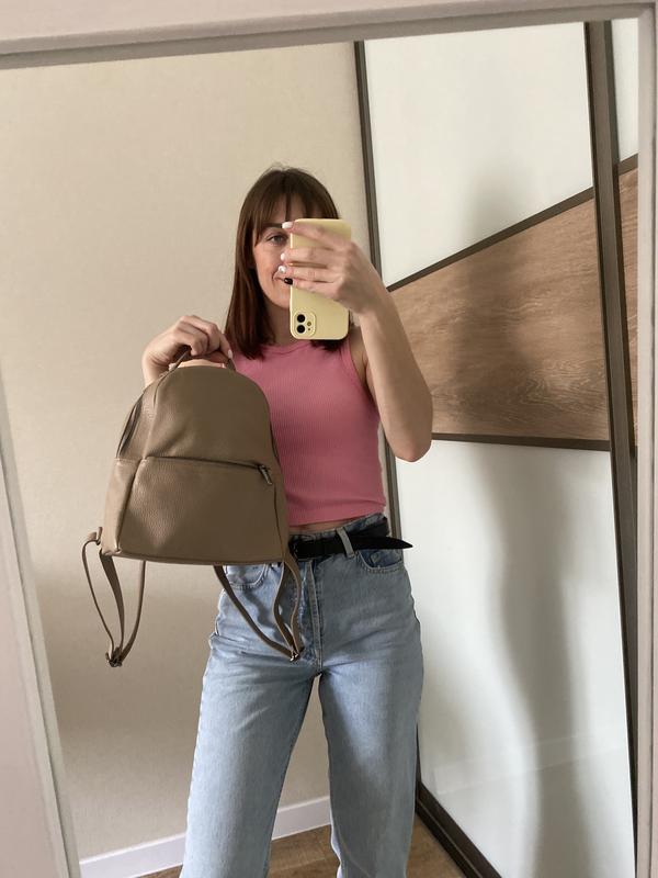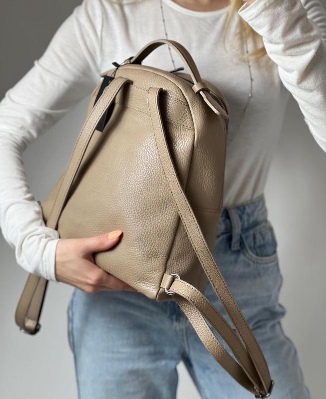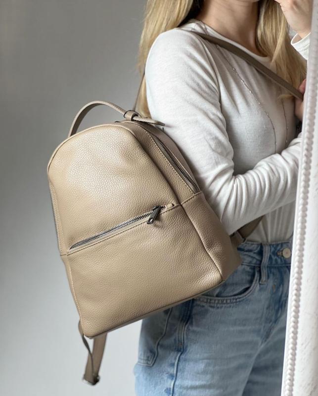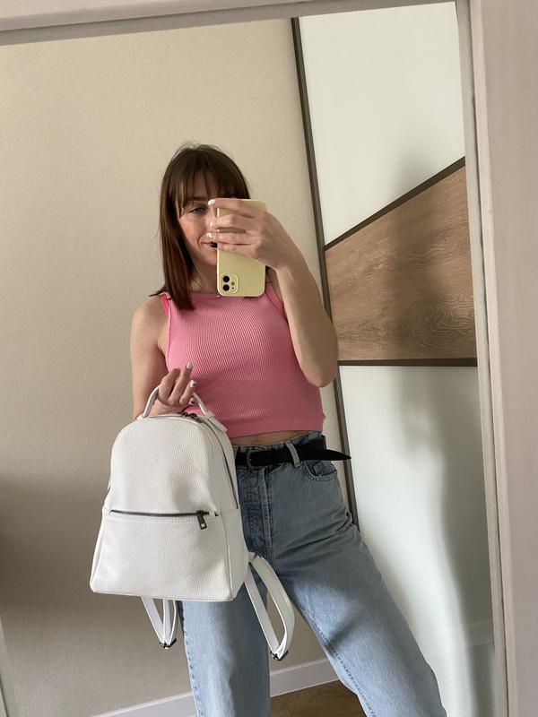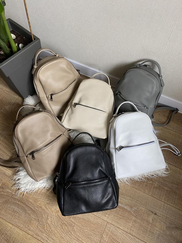 Лише білий Практичні рюкзаки на кожен день.Одне відділення, всередині якого кишеня на замку. Зовнішня передня кишеняРозмір 29/24/12Білий, чорний, бежевий темнішийНатуральна шкіра, м‘які.Виробник Італія