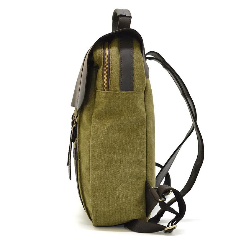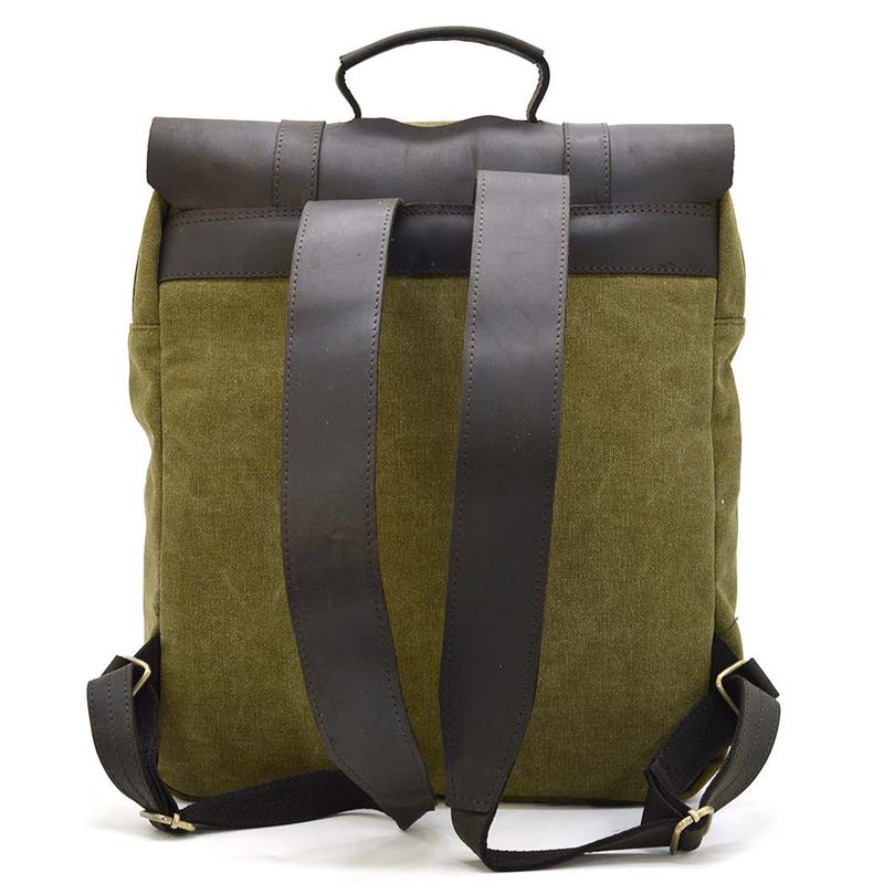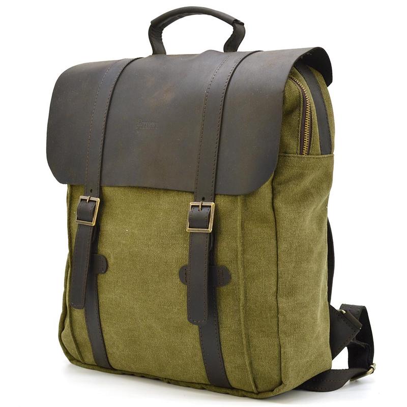 Канвас рюкзак із шкіряною ручкою 3420 - протягується через клапан назовні. Стильний рюкзак з парусини для ноутбука, для документів і речей.