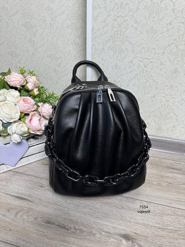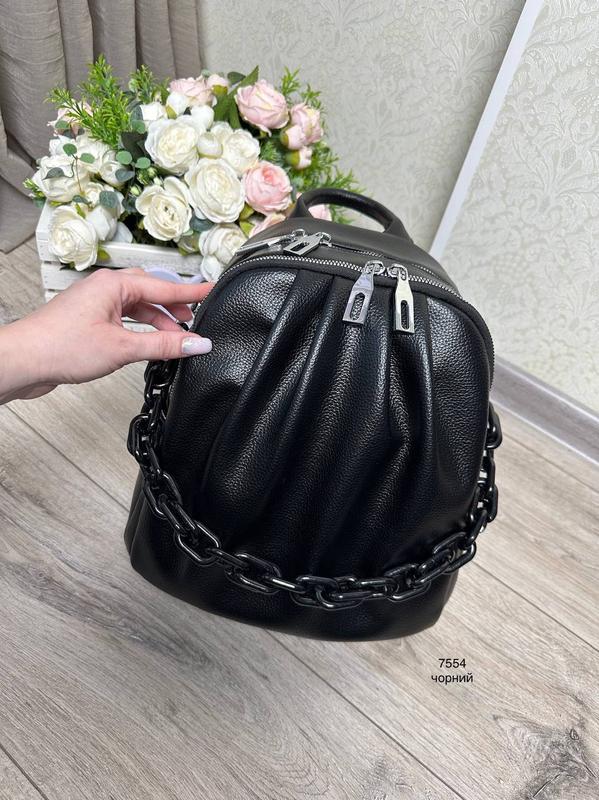 🔥🆕Код 7554 💚Стильний,місткий ,зручний рюкзак.✅еко.шкіра ✂️Ширина 27 см.,висота по спинці 29 см.,дно 14 см.✔️Два окремих відділення ,бокові кишені.