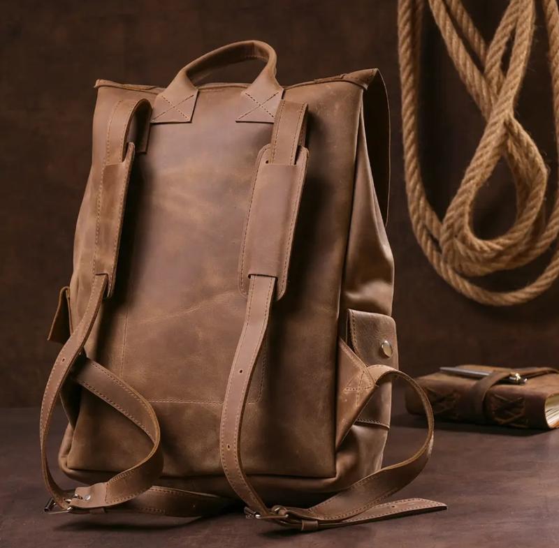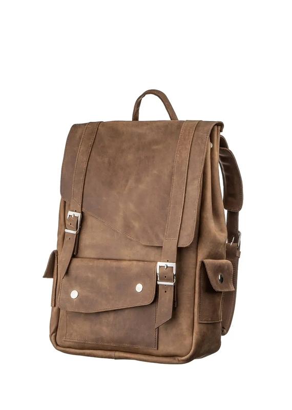 Зручний вінтажний рюкзак як для міста, так і для подорожі. У такий рюкзак ви можете вмістити з собою ноутбук. Варто звернути увагу, що в моделі відсутня підкладка. Всередині рюкзака тильна сторона шкіри. Аксесуар доповнено сріблястою фурнітурою в дизайн. Рюкзак приємний на дотик. Надійно прошитий міцною ниткою в темних тонах, яка надає аксесуару родзинку. Шкіра, з якої виконаний рюкзак користується особливою популярністю серед багатьох клієнтів. Її обирають за зовнішній вигляд, який змінюється в кращу сторону в процесі експлуатації, покриваючись розкішними потертостями. Ви можете самостійно регулювати наповненість рюкзака за допомогою ремінців і кнопок в моделі.