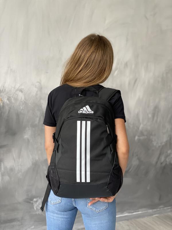 Характеристика: Логотип Adidas у верхній центральній частині рюкзака; М'яка ущільнена передня частина; Тверда спинка; Дно ущільнене, ЕКО Шкіра; Дві бічні кишені для води з сіточки; Зовнішніх три відділи на замку; Містке основне відділення; Зручні м'які лямки, регульовані по довжині; Верхня ручка-петля для перенесення; Є бічні стяжки; Розмір: 47х31х21 Колір - чорний, темно-синій з чорним, синій з чорним, білий з чорним. Тканина - оксфорт з водовідштовхуючим ефектом, зносостійка, світловідбиваюча. Дно - ЕКО Шкіра Підкладка - поліестер.