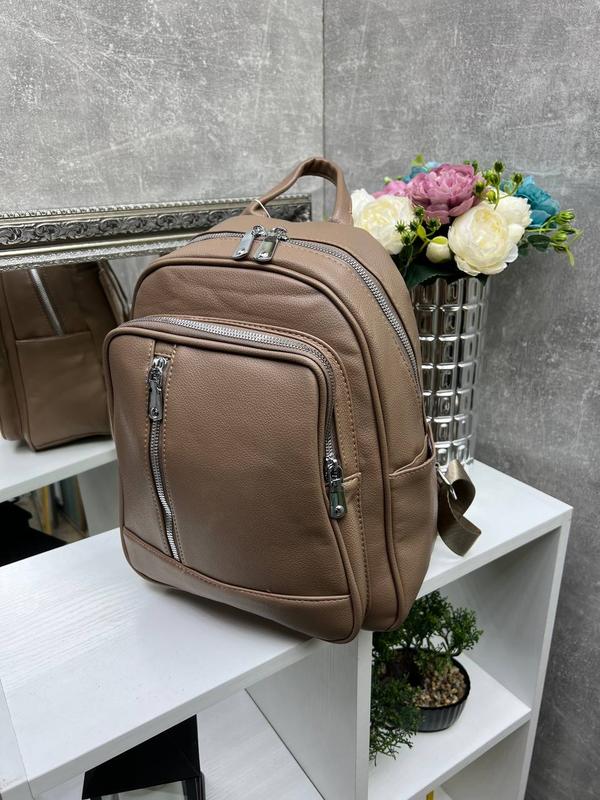 Одне відділення на блискавці. Усередині відкрита кишеня і кишеня на блискавці. На лицьовій стороні відділення на блискавці і кишеня на блискавці. На зворотній сторонній кишеня на блискавці. По бокам рюкзака відкриті кишені.