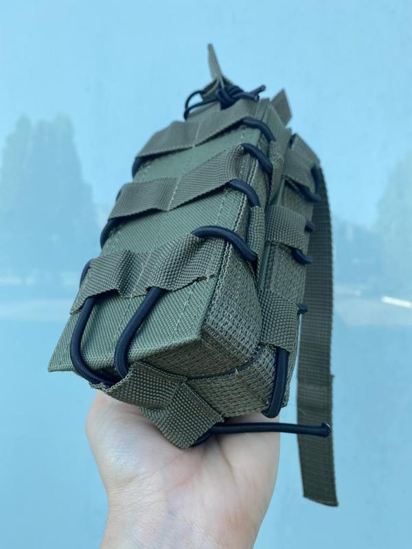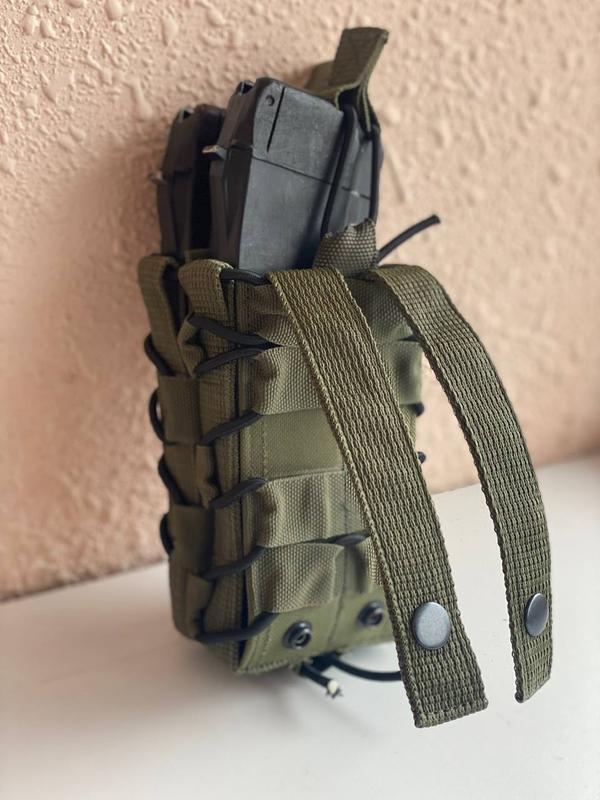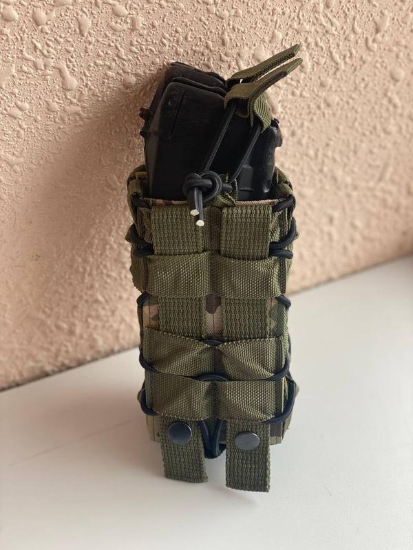 Фіксація вмісту здійснюється за рахунок вплетеного еластичного шнура. З використанням таких підсумків можна вільно бігати, повзати, десантуватися з броні, при цьому без остраху розгубити боєзапас.