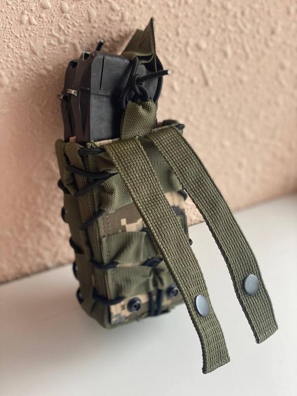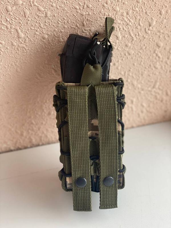 кріплення - MOLLE, яке посилене кнопками, фронтальна частина оснащена