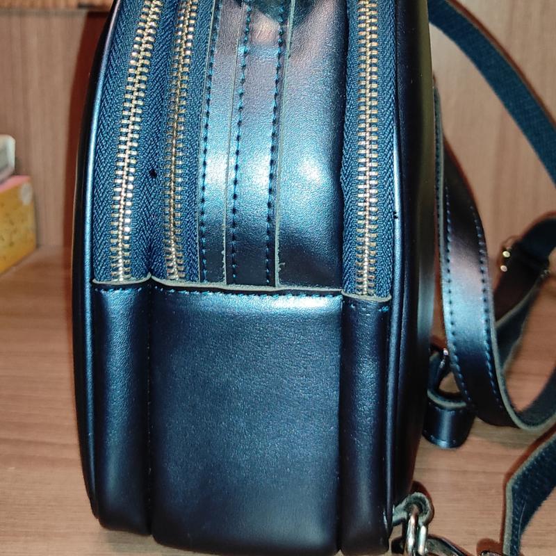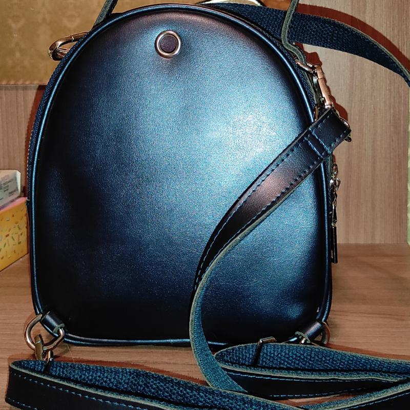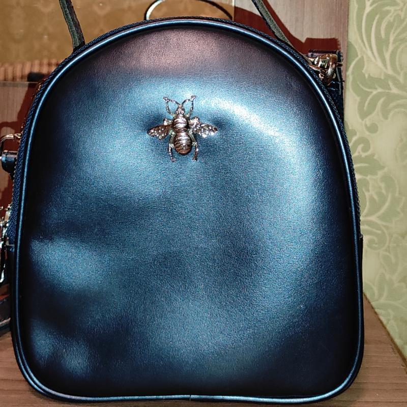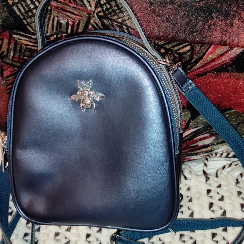Стильна невелика жіноча сумочка "Бджілка" з шкіри, через плече, з трьома відділеннями і отвором для навушників. Ширина 10см