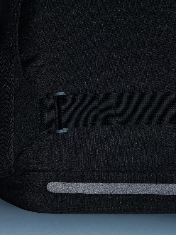 Спинка та лямки мають ущільнювач і сітку, яка дозволяє комфортно носити навіть завантажений рюкзак. З обох боків розташовані додаткові кишені із сітки. На передній стороні присутні світловідбиваючі елементи (фото 5).