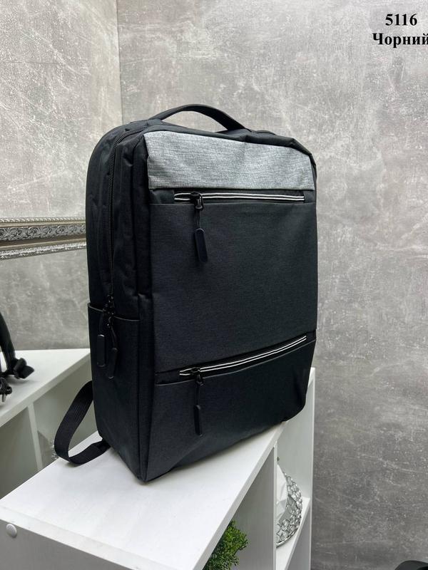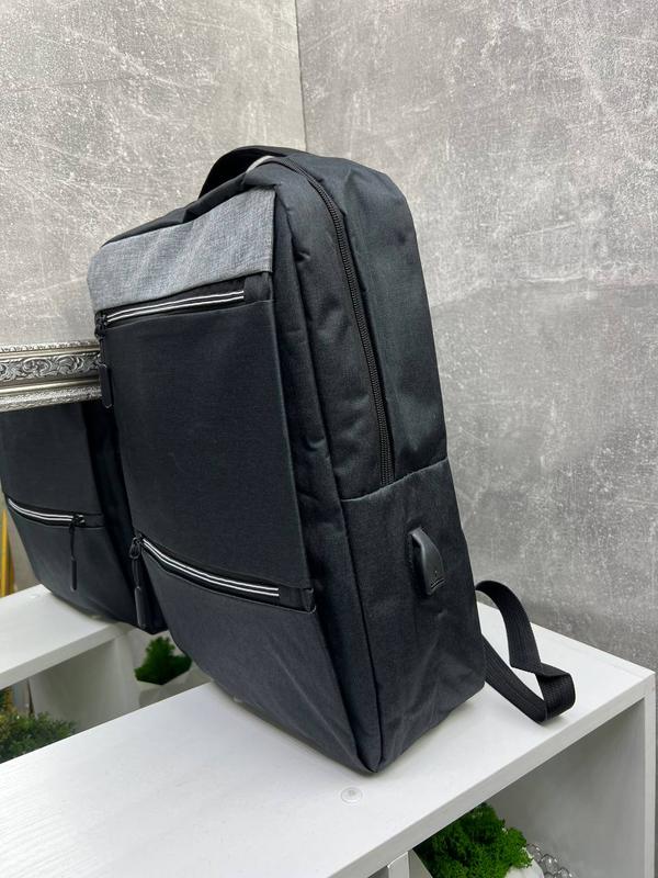 На лицьовій стороні 2 кишені на блискавці + бокова кишеня.