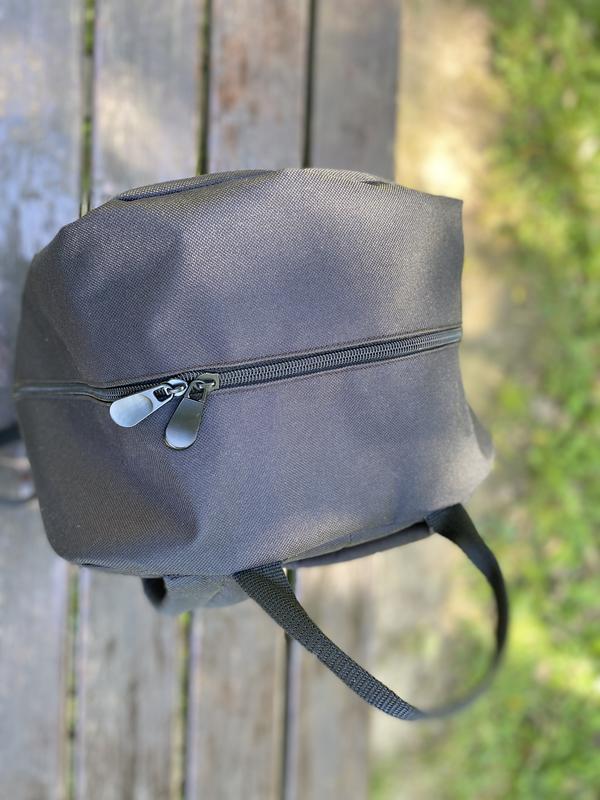 Рюкзак виконаний з щільного матеріалу, спинка з ущільнювачем, велике основне відділення з карманом у середині та менше відділення попереду.