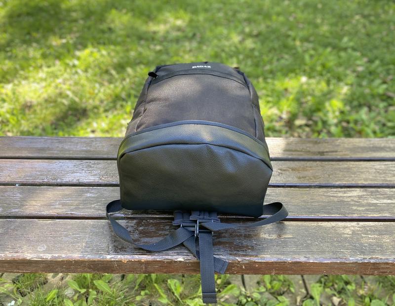 Дно рюкзака зроблено з якісної екошкіри. Також рюкзак має ручку для носіння у руках.
