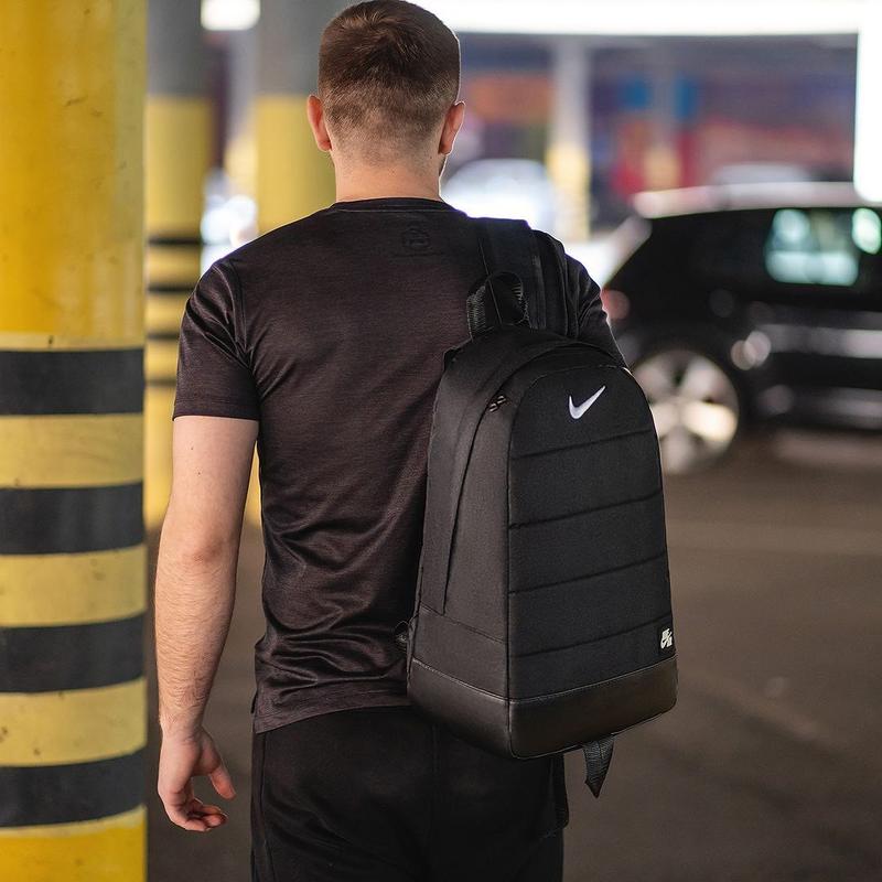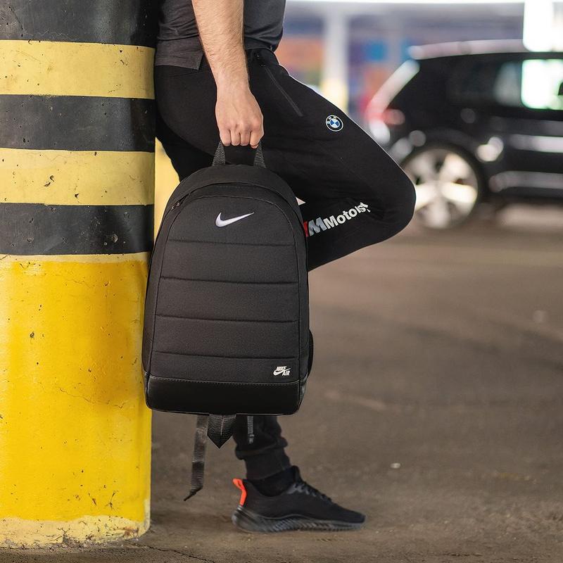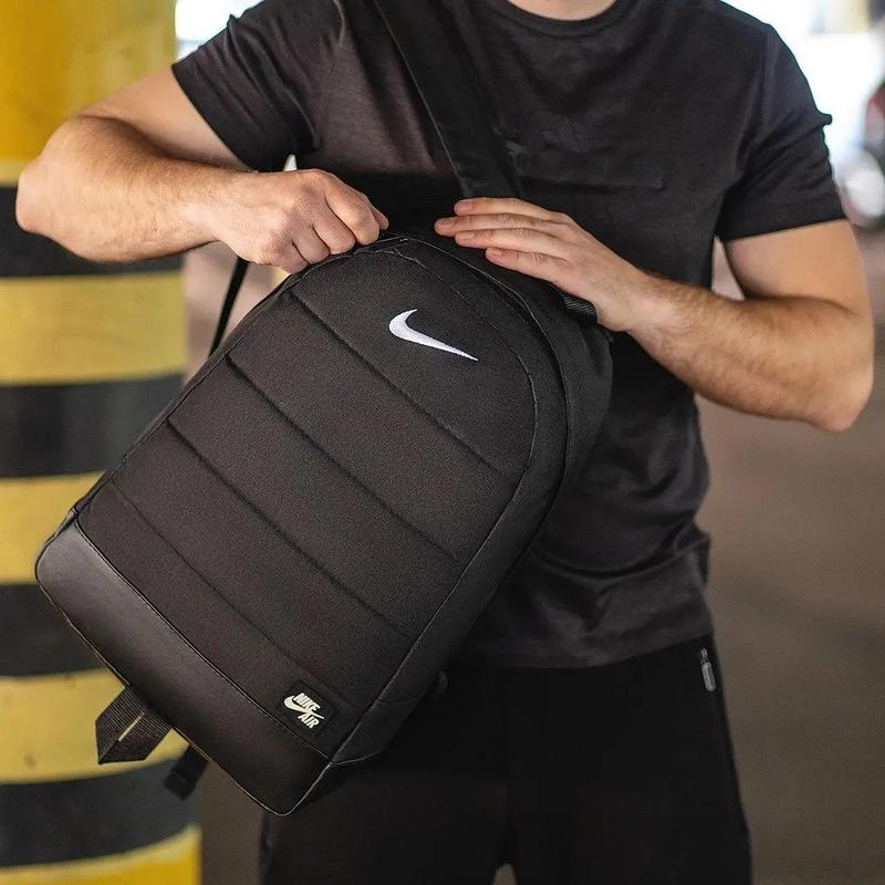 Ідеальний варіант для повсякденного носіння. • Характеристики: Матеріал: Oxford 600d (Висока якість, зносостійка) Колір: чорний Стать: Unisex • Особливості товару: - У головному відділенні велика кишеня під спинкою - Велика зовнішня кишеня - Зручні широкі лямки, що регулюються по довжині - М'яка ущільнена спинка + вентильована сітка - Матеріал підкладки: Нейлон (міцний) - Ручка для перенесення в руці – Якісний логотип популярного бренду Nike Розміри рюкзака: Довжина - 45см., Ширина - 32см., Глибина - 16см.
