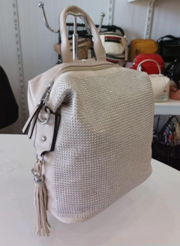 Привабливий рюкзак зі стразами та бахромою з натуральної замші.