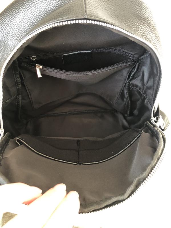 Всередині одне містке відділення, одне напів відділення, дві кишені на блискавках та дві - відкриті кишені.