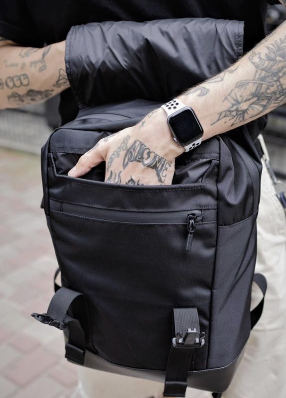 Основне відділення на міцні застібці з великими кишенями-органайзерами для гаджетів, які розміщені на внутрішній поверхні рюкзака.