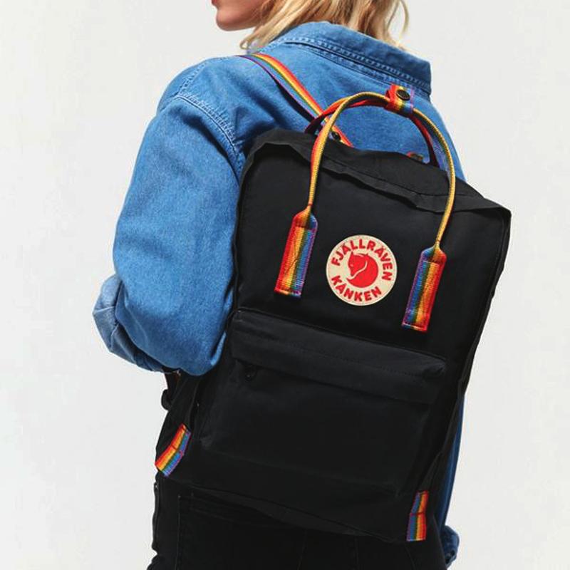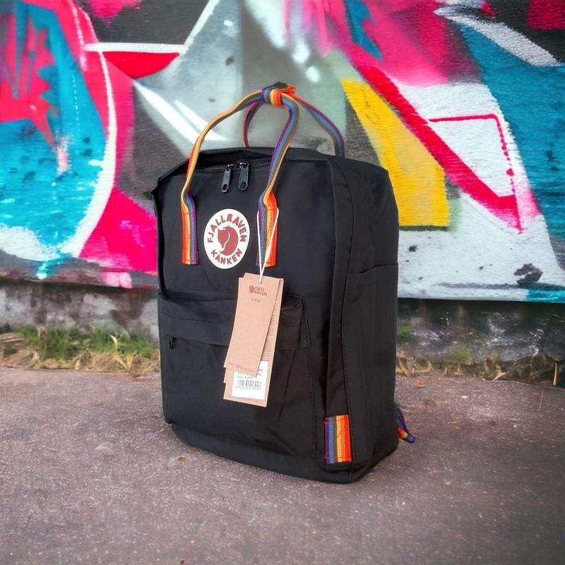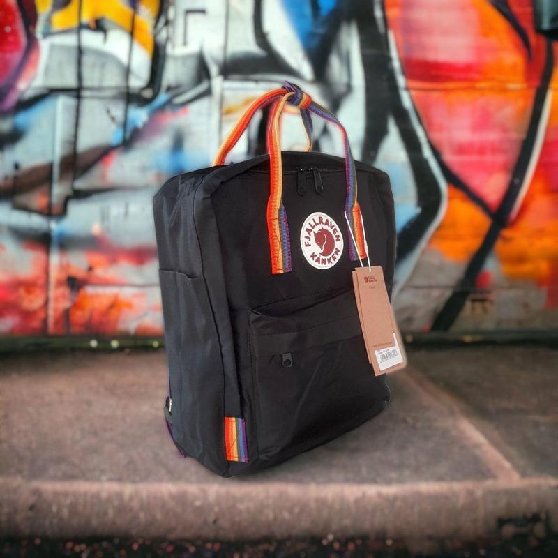 Чорний рюкзак Kanken Classic 16 L з райдужними ручками. Портфель канкен Цей