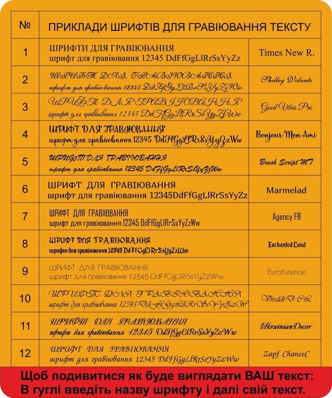(Вказуйте ваші побажання з гравіювання при обговоренні замовлення з нашим менеджером)