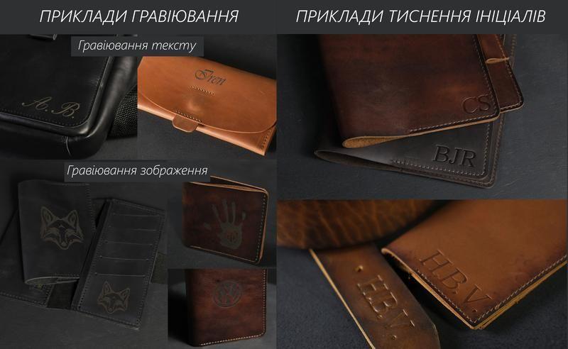 Наша майстерня пропонує послуги лазерного гравірування та тиснення на шкірі, які підкреслять індивідуальність вашого виробу. Також, виріб з особистими ініціалами або красивим зображенням відмінно підійде як подарунок родичам, друзям, близьким людям та колегам на роботі.