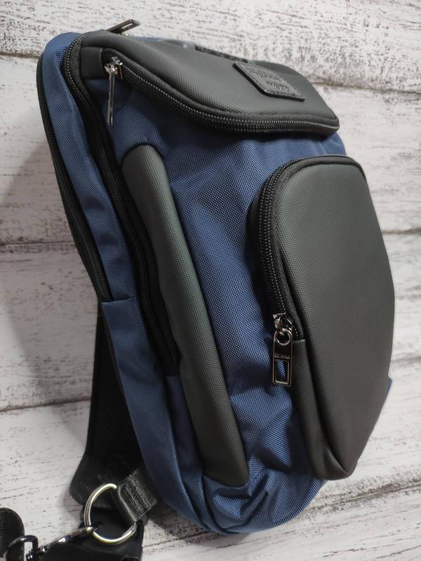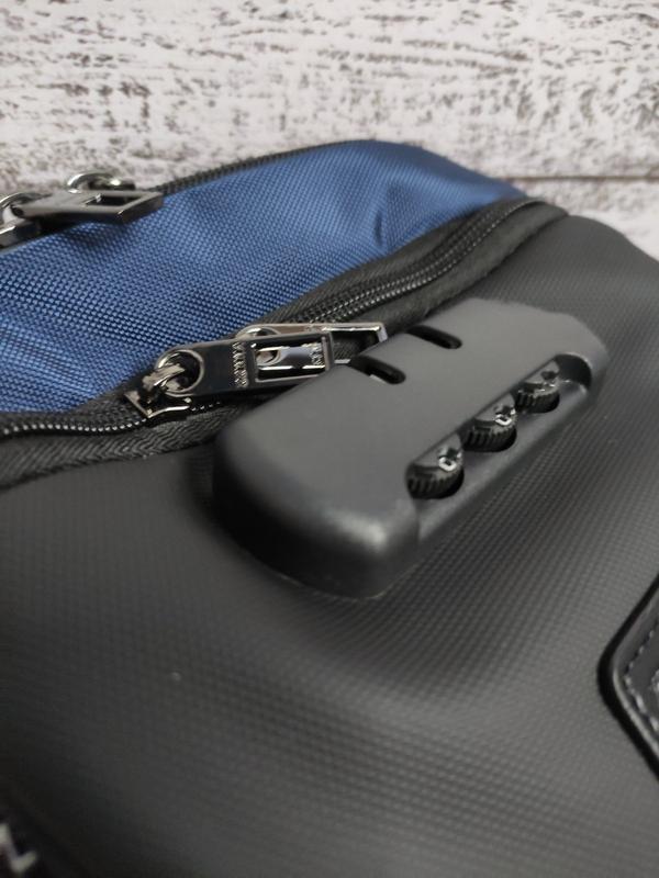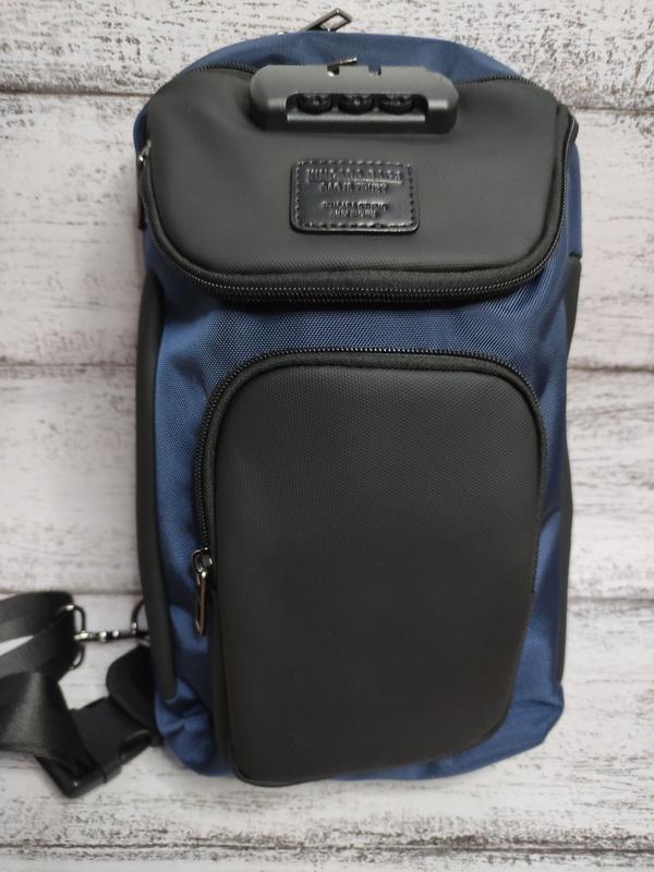 Одноямкова сумка-рюкзак призначена для повсякденної експлуатації та носіння особистих речей. Має 2-а зручних основних відділення з додатковими кишенями та 3 додаткові невеликі відділи, різного розміру під дрібні речі. Основний відділ сумки-рюкзака має захист від крадіжки та оснащений напівавтоматичним кодовим замком (за замовчуванням код 000). Спинка рюкзака м'яка ортопедична та оснащена прихованим відділом, який можна використовувати для гаманця, складаного ножа та інших речей. Рюкзак оснащений однією зручною м'якою лямкою. Носити рюкзак зручно як на праве, так і на ліве плече.