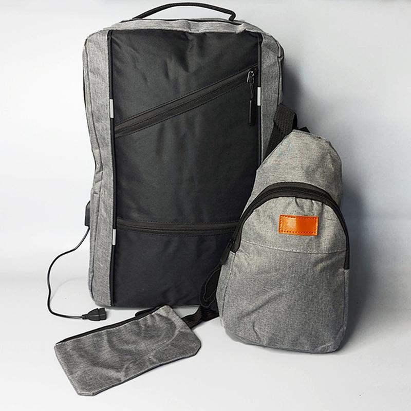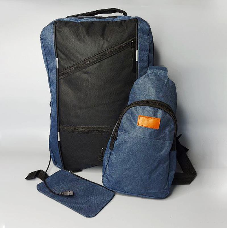 - Набір складається з рюкзака, сумки через плече та маленького пеналу для дрібниць.
