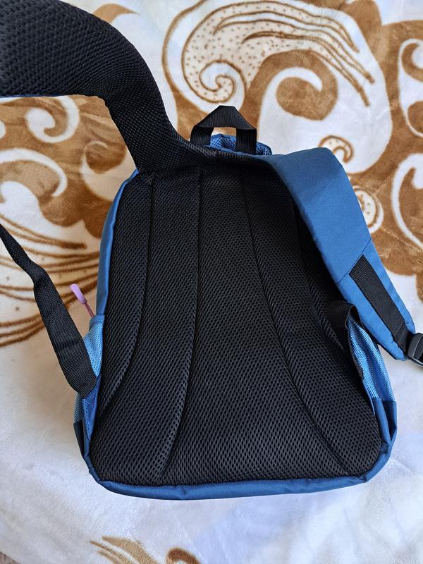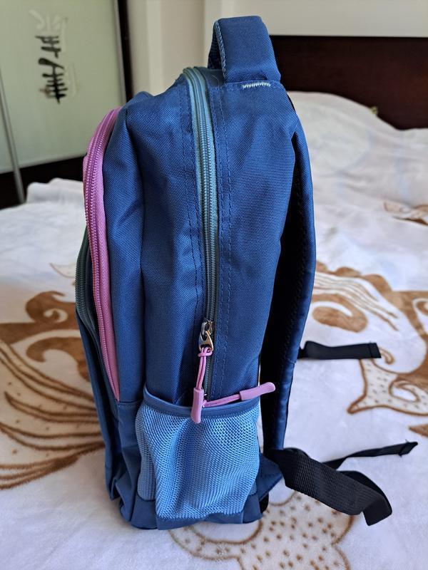 Анатомічна спинка з м'якими подушечками. • Широкі та зручні лямки, м'яка ущільнена ручка, ручка-петля. Рюкзак м'який, легкий і водночас місткий. 2 відділення на блискавці: для зошитів, підручників, канцелярії, великої передньої кишені, 2-бокових кишені на гумці для пляшечки з водою або термоса. Замки надійно вшиті, відкриваються легко та плавно. Світловідбивні елементи піклуються про те, щоб дитину було видно на дорозі в темну пору доби. Дно рюкзака ущільнене. Завдяки цьому воно не прогинається під вагою книг. Основний матеріал: міцний поліестер, готовий до шкільних пригод. Він стійкий до пошкоджень і добре миється. Підкладка виготовлена з міцного поліестеру.
