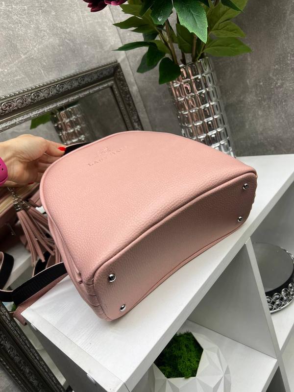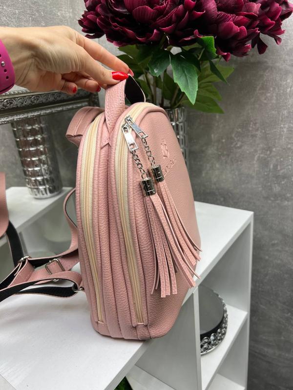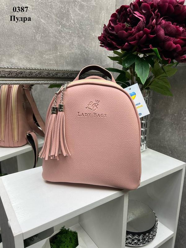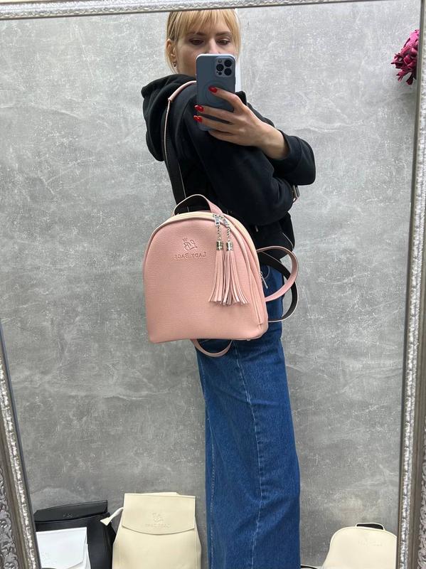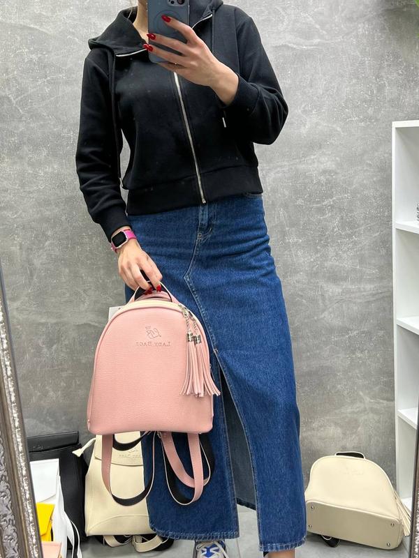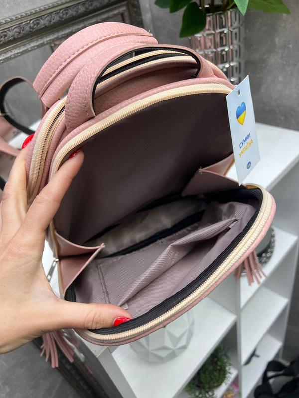 Два відділення на блискавці. Усередині відкрита кишеня і кишеня на блискавці . На зворотній стороні кишеня на блискавці . Довга ручка витягується ,тому рюкзак можна носити сумкою через плече .