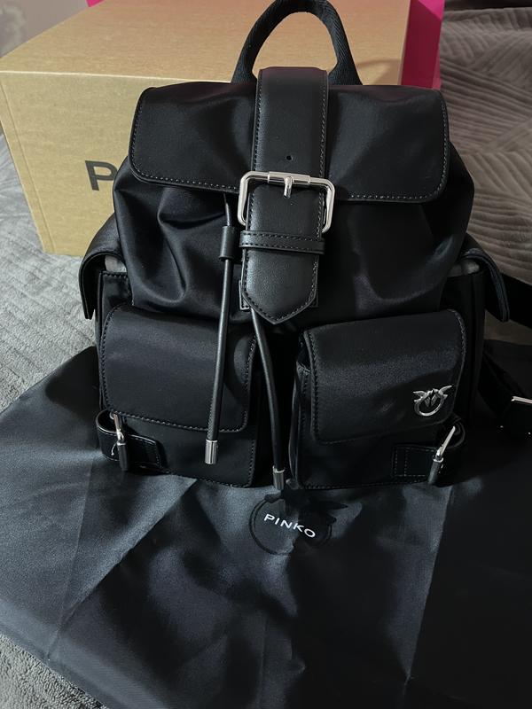 Рюкзак pinko з накладними кишенями з переробленої тканини чорний